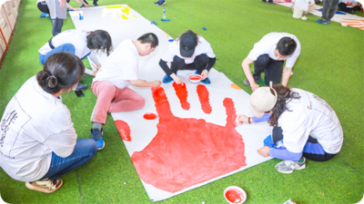 《纳斯卡团队巨画》是腾训体验教育精心研制的创意团建产品。参与者要用画笔和颜料,挥洒艺术才能,绘出史诗般的巨幅画作,巨幅画作会被分成若干小块,各部分由不同的团队负责完成。通过团队成员的共同努力创作,最后拼成一幅具有企业文化代表意义的图画,用视觉的感观直接呈现在所有人的面前。能够进一步增进团队的凝聚力,提升员工的企业归宿感。